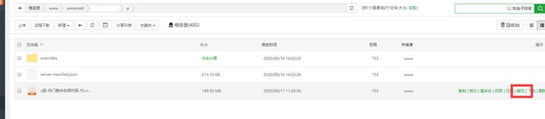 • 在新建的文件夹里上传刚刚导出的整合包,并解压;成功后如下图